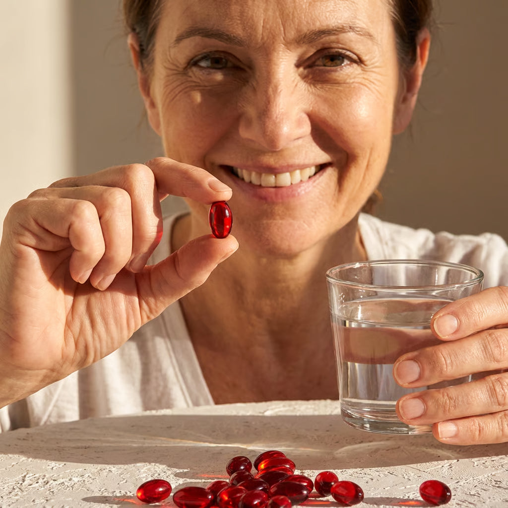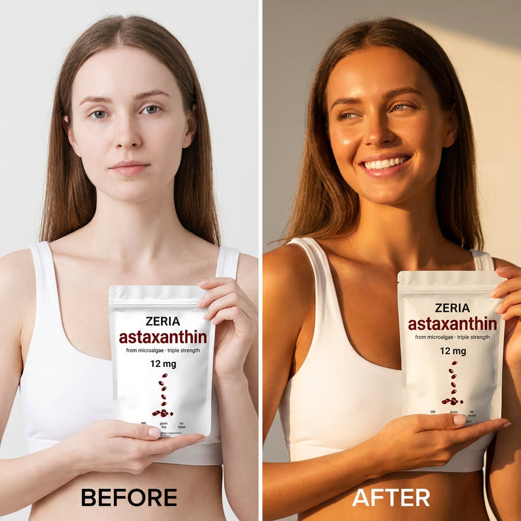 Astaxanthin helps your skin stay naturally bronzed and radiant year-round, without any UV exposure or damage.